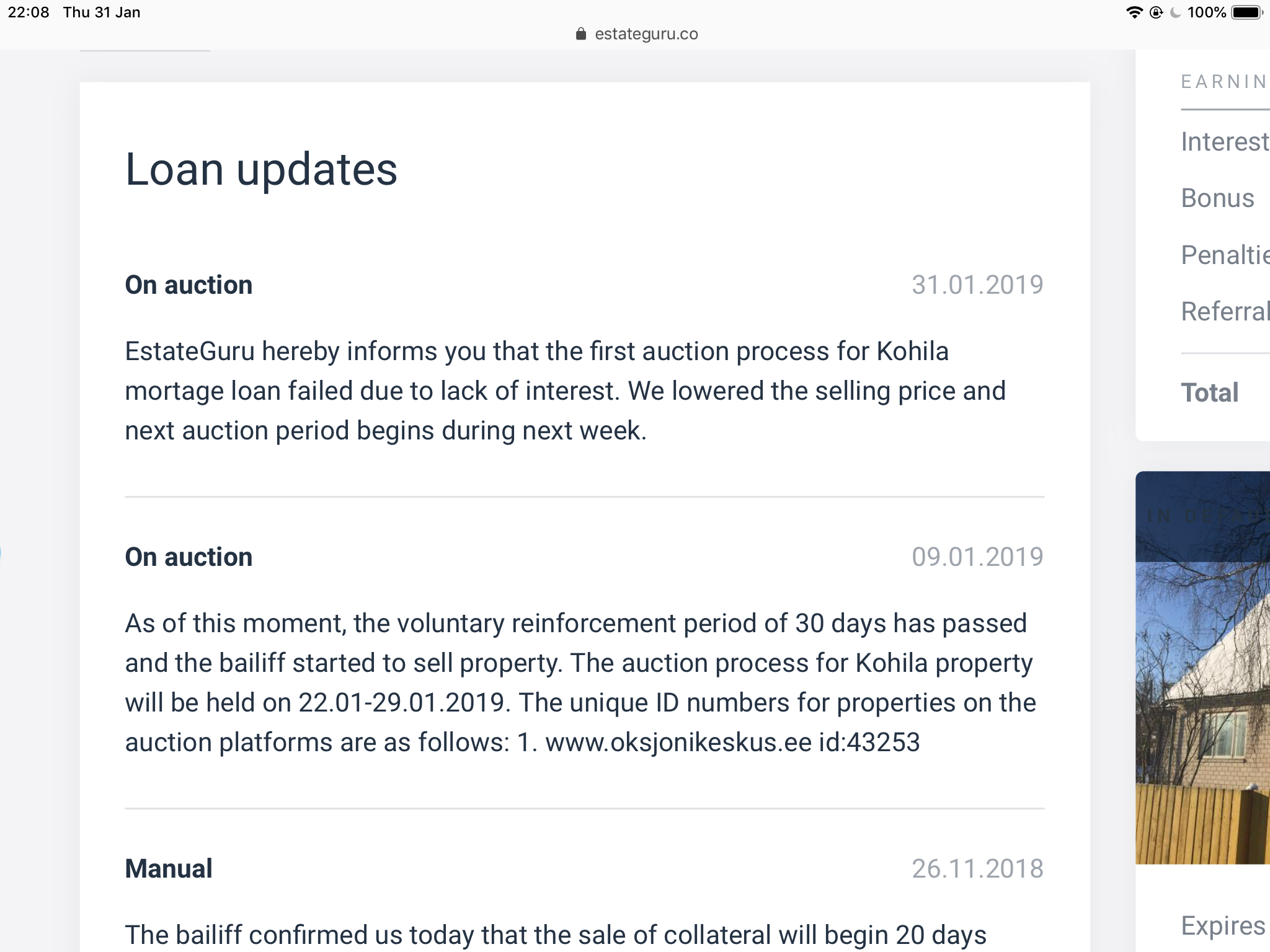 A razão porque se deve ter atenção aos colaterais nos empréstimos sem buyback, falhou o primeiro leilão, vamos ver os próximos.(LTV 52%)