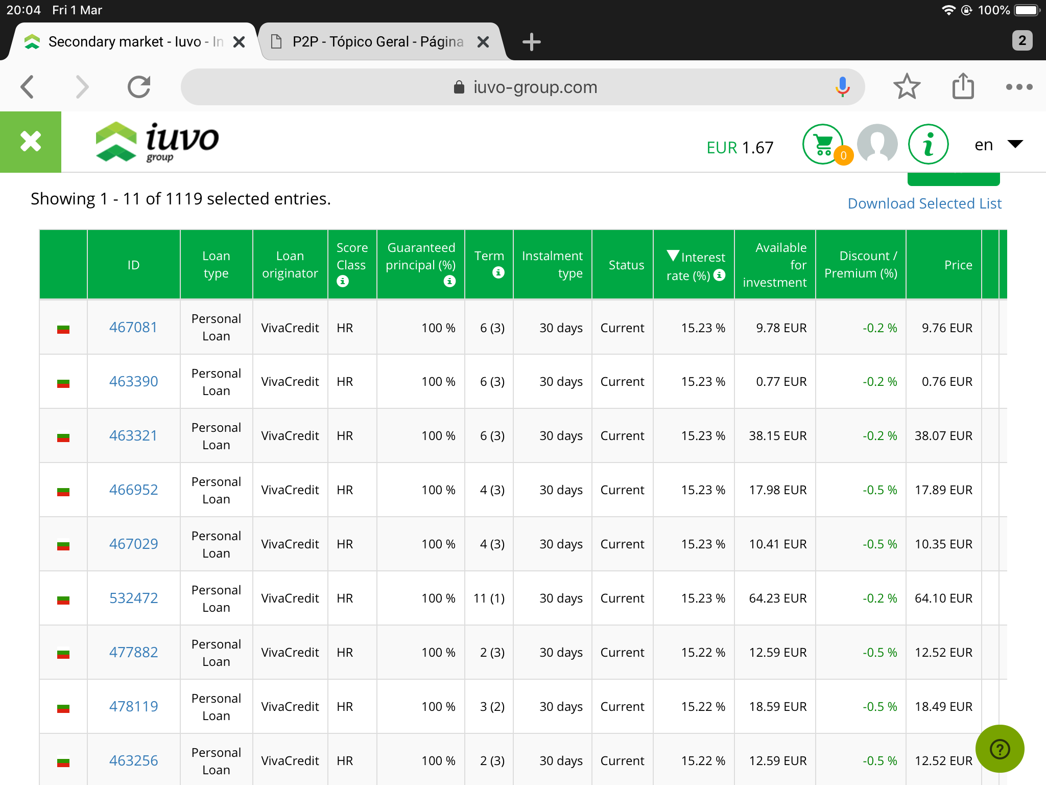 Também peguei alguns loans com desconto também, seguindo a dica do Rick. Sempre fugi de late loans e ainda não estou convencido dessa estratégia.