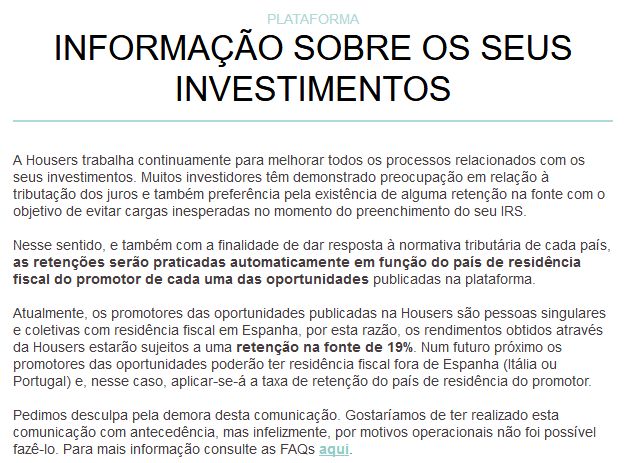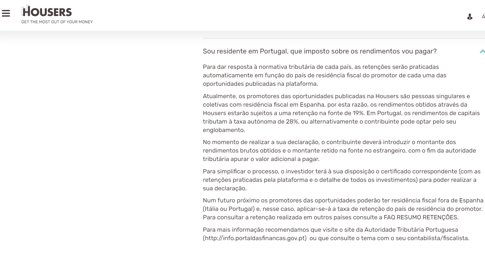 Também estou de saída da Housers porque não vejo vantagens face às outras plataformas, e a nível fiscal parece-me que vão complicar...