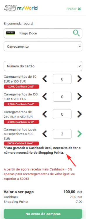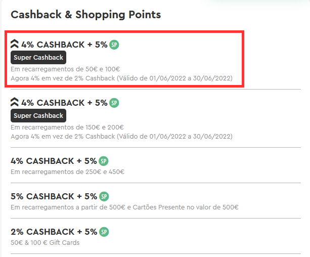 3) Grandes empresas (IKEA, Pingo Doce, El Corte Inglês,...) - Este aqui é um pouco mais complexo, pois implica comprar primeiro um cartão presente com determinado saldo (o cashback é atribuído logo no momento dessa compra) e depois usar isso para pagar as compras na loja.