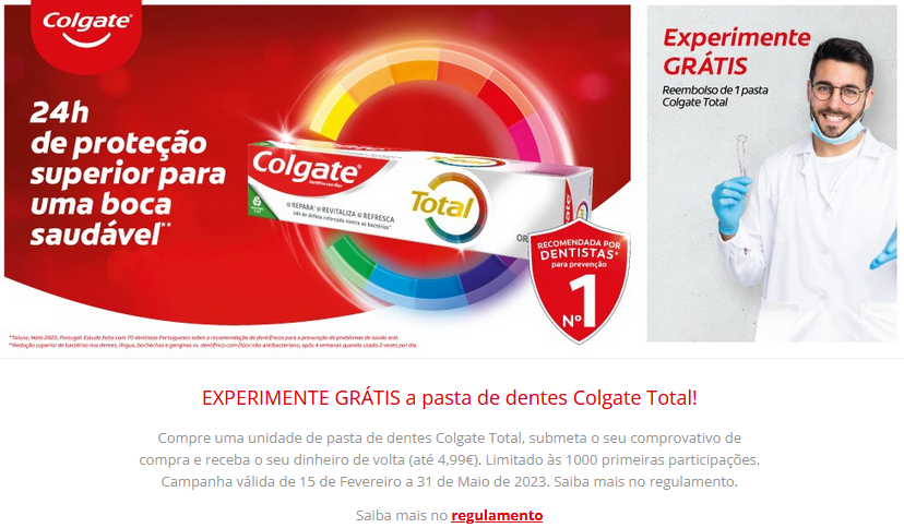 Atenção às versões de 2 unidades! Mais abaixo no regulamento dizem que "Caso o utilizador tenha comprado mais do que uma pasta de dentes, será reembolsado em apenas uma unidade."
