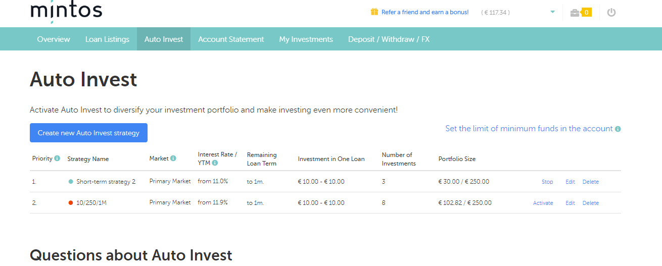 Tenho configuradas 2 estratégias em auto na mintos e não consigo que use a totalidade do saldo disponível.