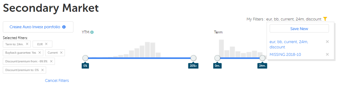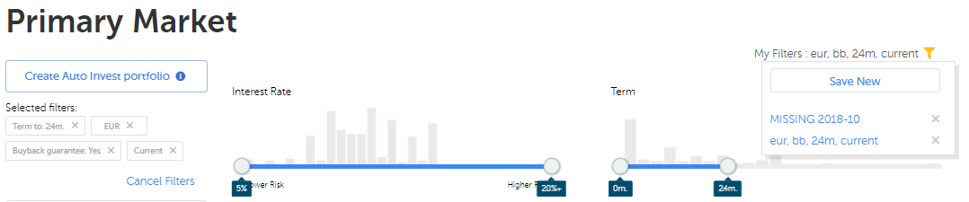 Apenas investo com buy-back guarantee e em Euros. Não acho que o premium por não ter buy-back ou por investir noutras moedas compense o risco/taxa de câmbio. Tenho também tentado comprar apenas emprestimos até 24 meses (quando aparecem pechinchas no mercado secundário compro mais longos).