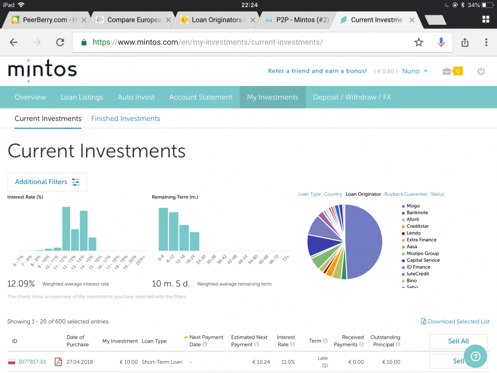 Olá a todos, esta minha experiência com a Mintos faz 2 anos. Ao longo do tempo tenho vindo a reforçar a posição aos poucos. Estes 2 anos mostraram-me que um dos aspectos mais interessantes é