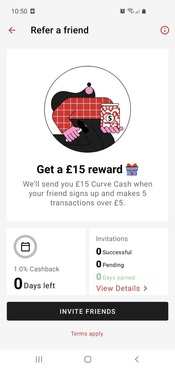 5£ após 5 transações nos primeiros 10 dias após adesão. Quem refere recebe 15£ em curve cash.