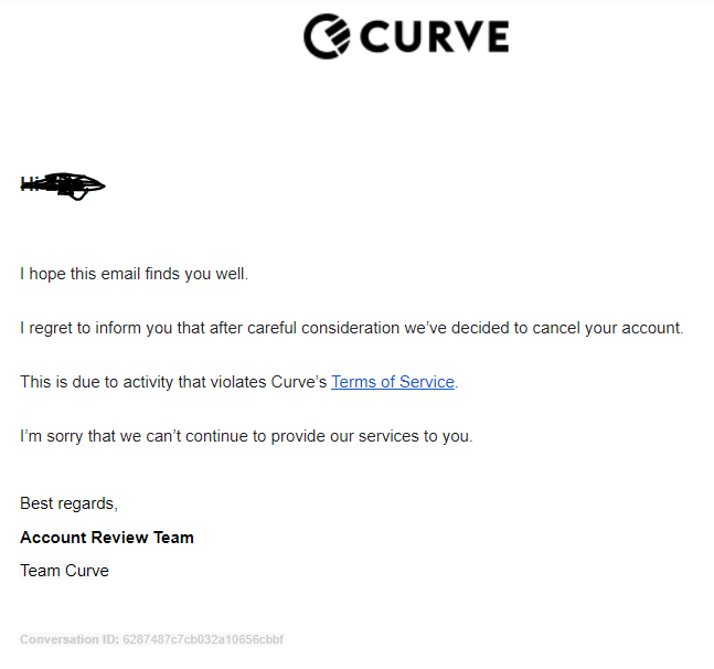 Bom dia, alguem sabe se o Curve tem dado problemas na utilização para carregamentos do MOEY? A conta da minha mulher foi cancelada e dos poucos motivos que encontro tem sido esse tipo de utilização.