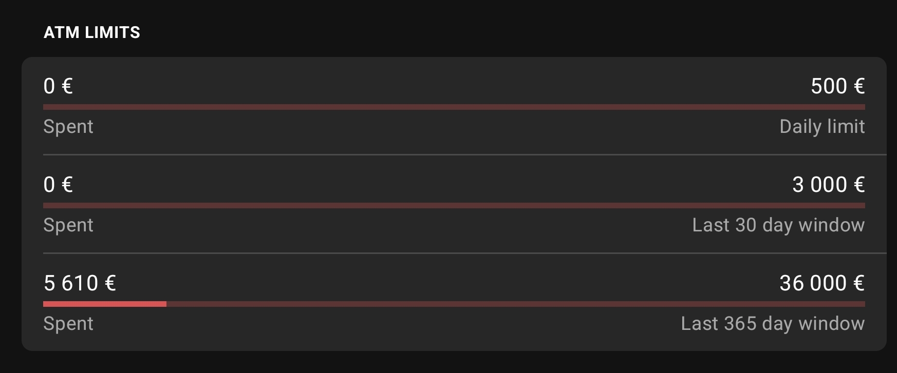 Como já tinha dito acima, os anunciados limites mensais de 200€ para o plano X, 400€ para o Black, 600€ para o Metal são apenas para levantamentos no estrangeiro.