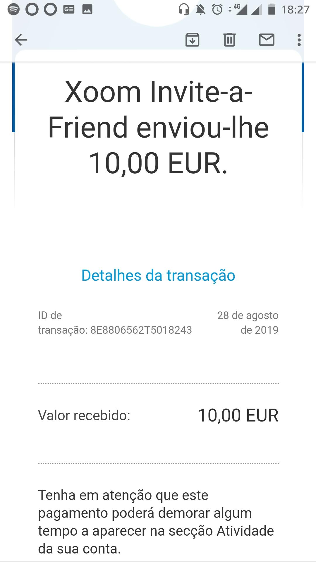 Nota, a conta do PayPal (não a da Xoom que pode ser do próprio dia ) tem de já existir há mais de 30 dias . Não pode ser criada agora.
