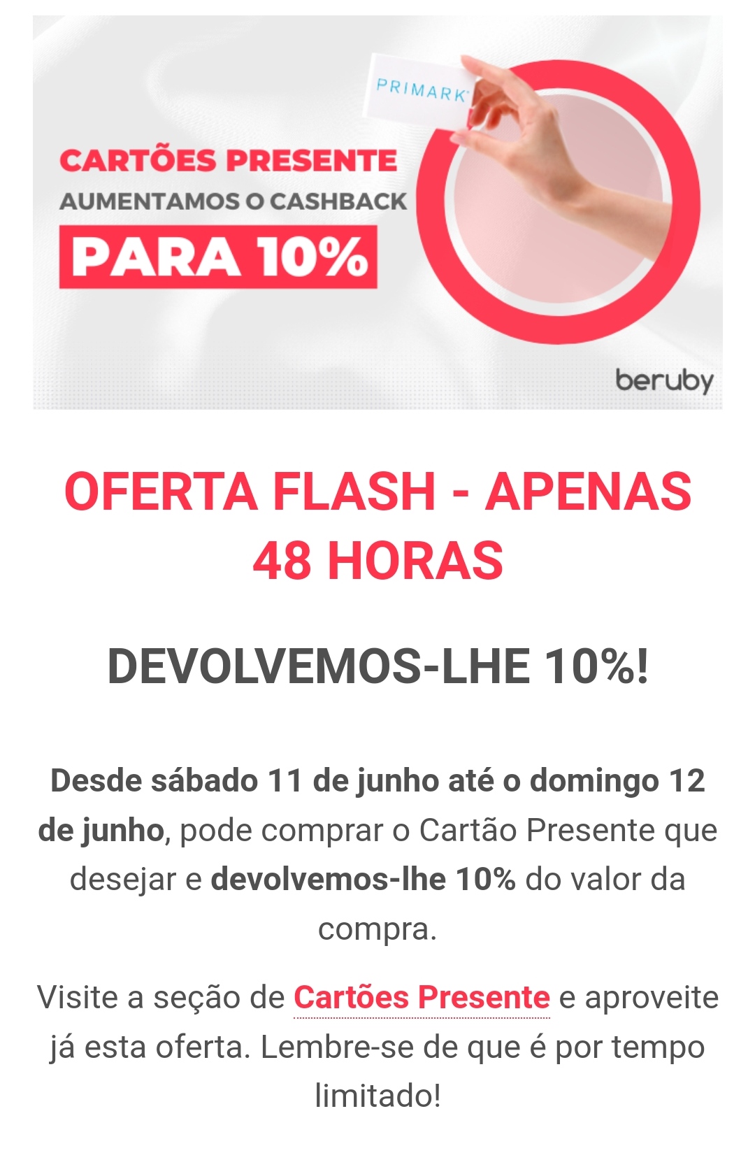E agora o cashback pode ser levantado apenas 3 dias após a compra do cartão presente.