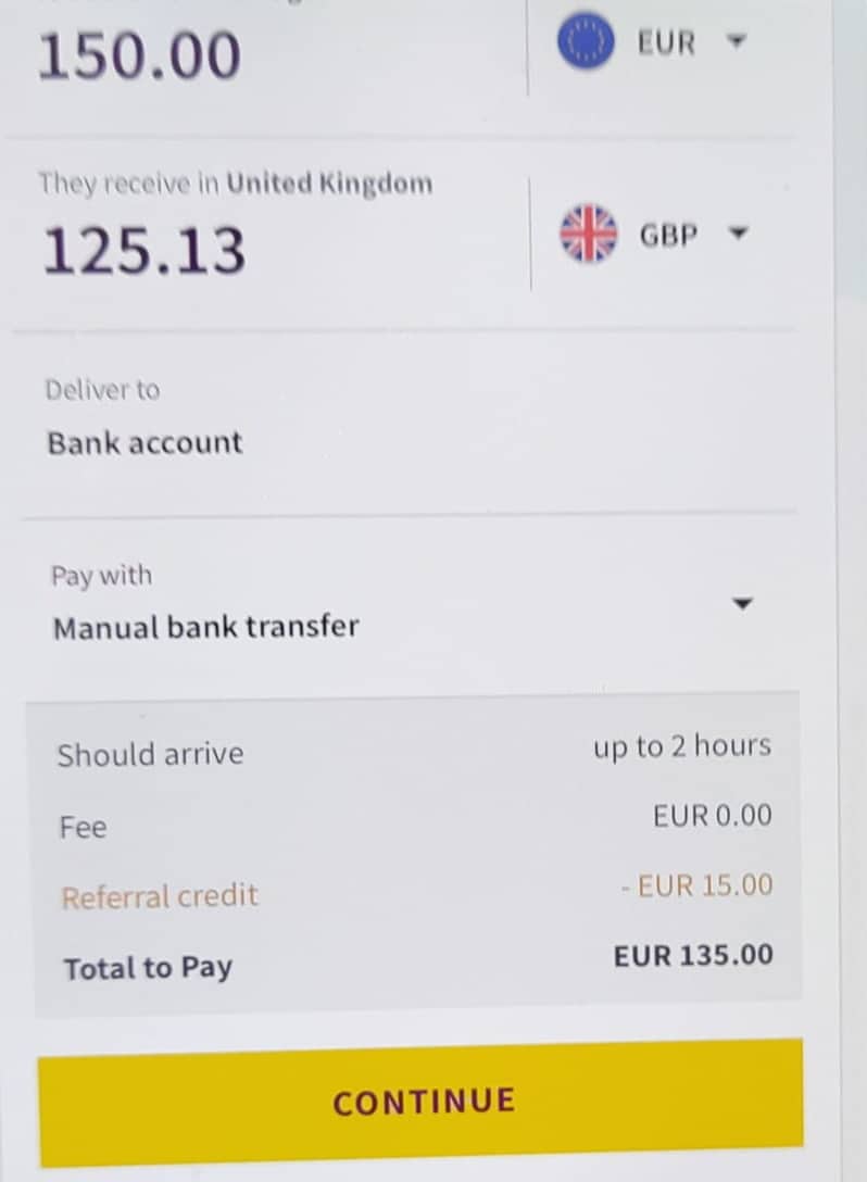 15€ de lucro por uma transferencia de 135€. Processo demora geralmente 2 horas no máximo