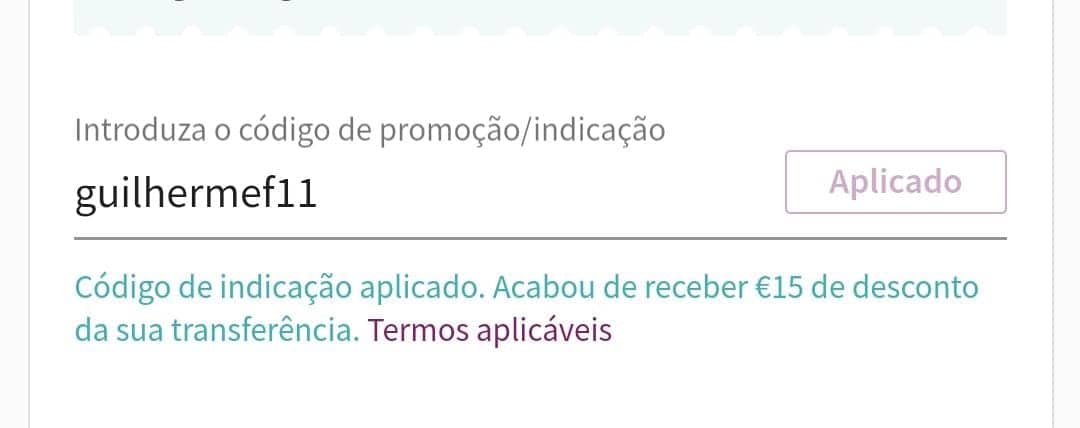 É no transfer sumary, onde  aparece promo code que é suposto colocar o teu referral GUILHERMEF11?