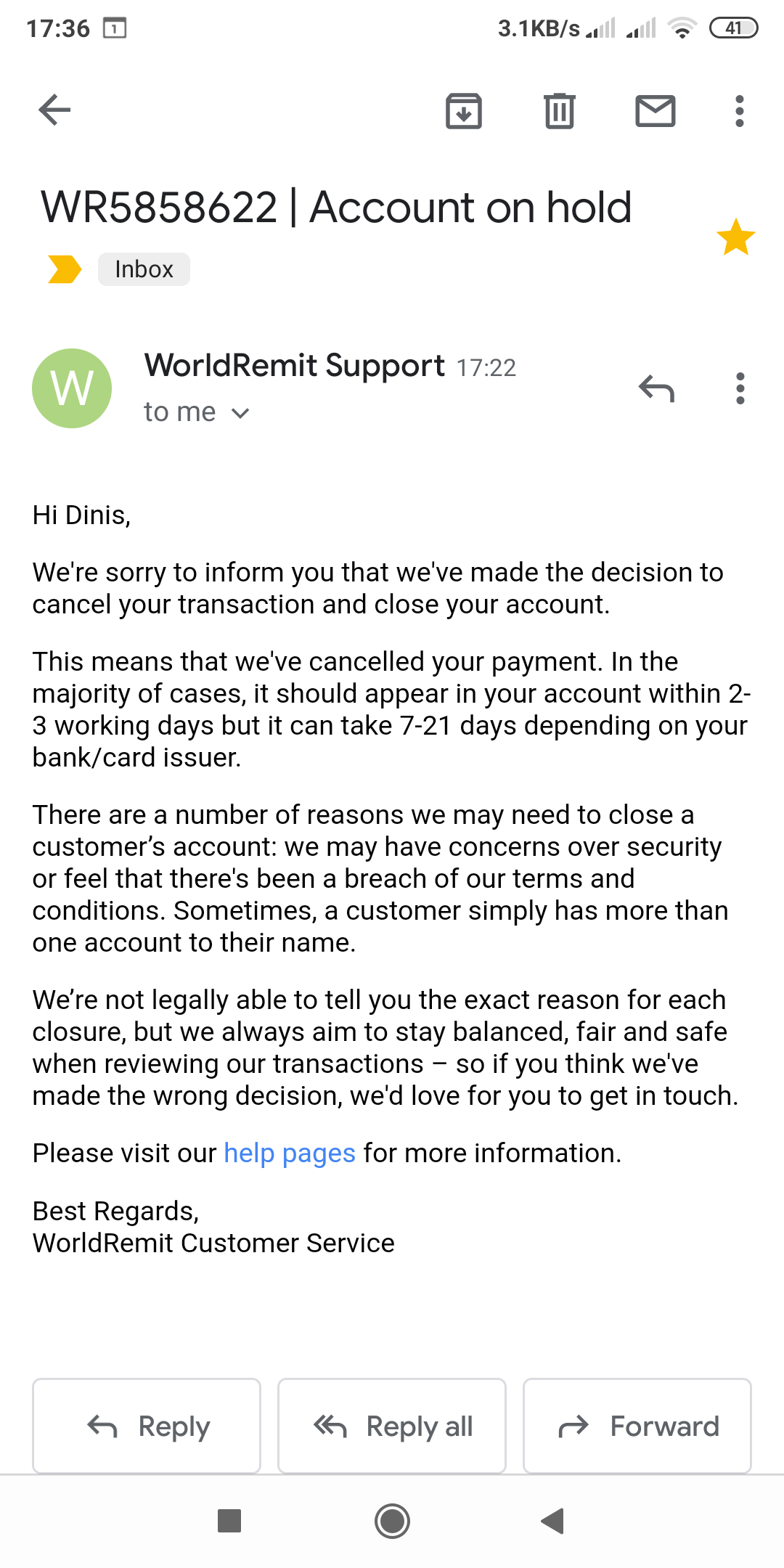 Lá mais para o fim do dia o estado no Worldremit deverá passar para "Processing". Acontecido isso, não há mesmo qualquer dúvida que está tudo como deve