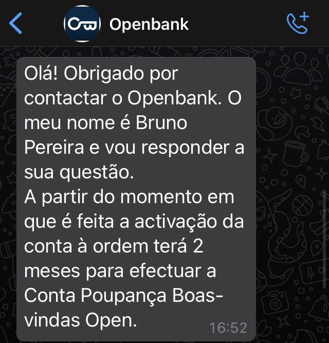 Abri conta no Openbank através do convite de amigo mas em principio vou trocar para a conta poupança boas vindas, que dá um pouco mais em metade do tempo, embora necessite de 5k em vez de 500€.