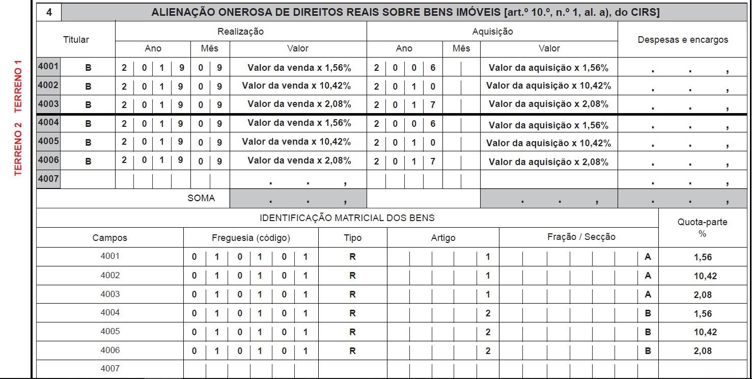 Precisava de uma ajuda no preenchimento do Anexo G do IRS. Trata-se de um lote de 2 terrenos que foram herdados e no ano passado foram vendidos.