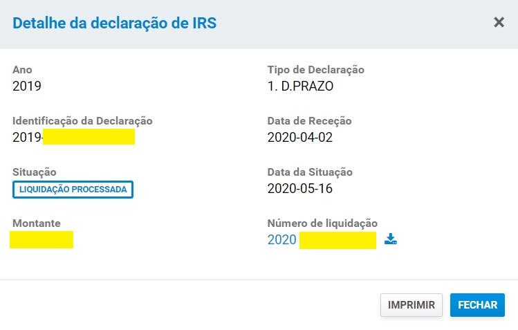 Declaração com reembolso a 19/05