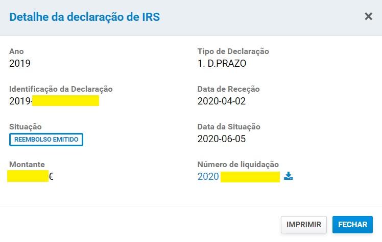 • Estado da declaração IRS 2020