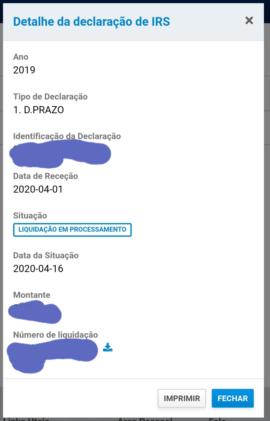 submeti a declaração dia 7 e passou logo a “Liquidação em processamento”. Até hoje não houve qualquer mudança.