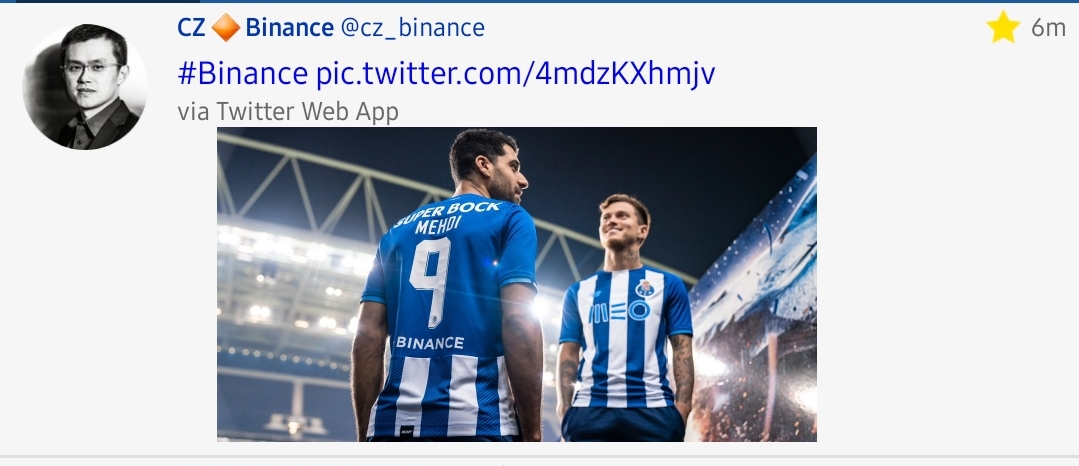 Não tem haver diretamente com BTC, mas mostra o início da penetração das exchanges Crypto em Portugal e logo no desporto rei. Ceo da Binance a fazer referência no Twitter ao Fan Token do FCP a ser lançado na Binance. E pub à exchange estará presente no equipamento.