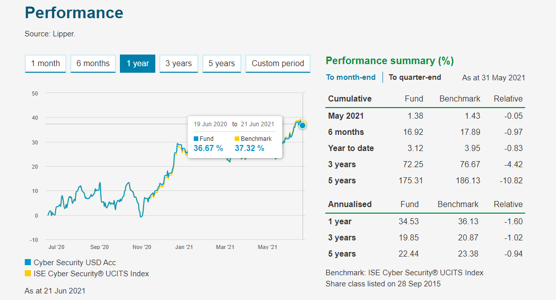 Se calhar o da L&G é melhor por conter mais empresas, mas como o da WT é tão recente não dá ainda para fazer uma comparação razoável... De qualquer maneira acho que ambos são boas apostas, pois a cibersegurança é cada vez mais importante com cada vez mais ataques (ransomware, etc..) a servidores/empresas, piratas informáticos a tentarem aceder/destruírem tudo, e com super-potências a tentarem espiar-se umas às outras sem regras como aquelas que existem há milénios nas guerras ditas <<convencionais>>