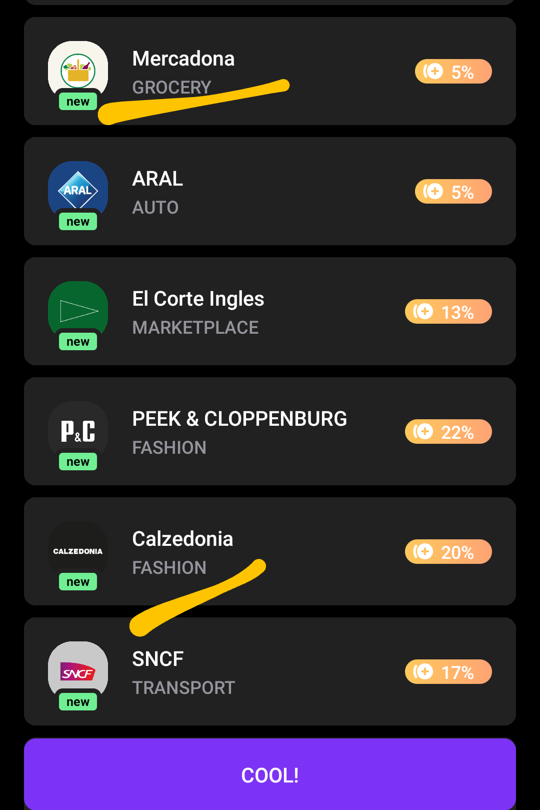 Mercadona está entre eles agora com 5%, o que é bom para mim, pois é meu preferido.