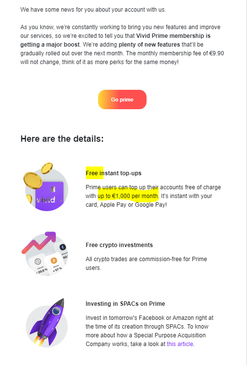 Digo que ficou "grátis" pois aparentemente agora com o Prime será possível fazer top-up de 1000€ por mês de forma gratuita.