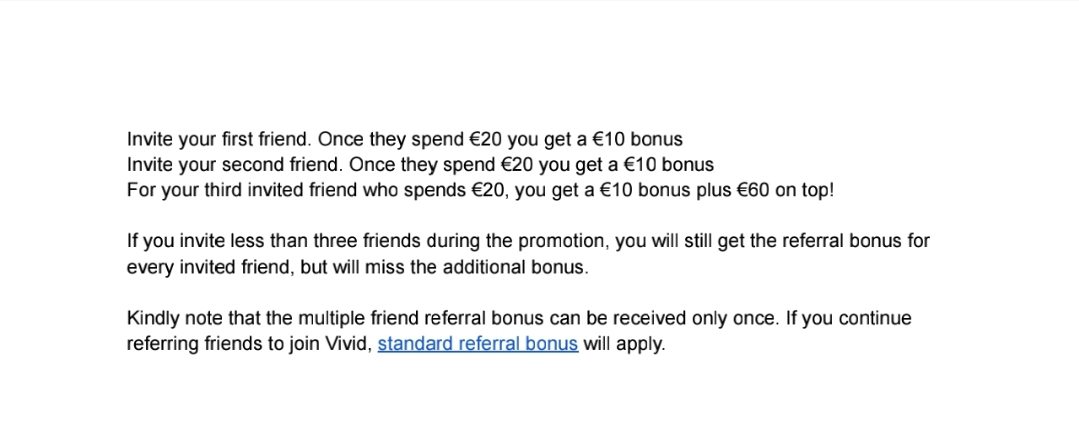 Recebi também uma notificação Vivid a dizer que poderia ganhar 300€ por convidar 3 amigos, mas depois na app a notificação leva para o ecrã "normal" dos superdeals... Não entendi bem como é possível chegar aos 300 (individualmente ou os dois) uma vez que ((20+50)*2)*3)=420... Talvez a app tenha de ser actualizada?
