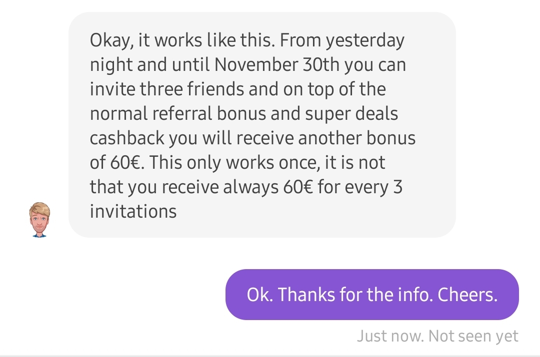 Tb tenho, mas a parte da pessoa convidada é que é dúbio, falam em 20€ mas depois o total que ele pode ganhar é 55€,. Dá ideia que é 5+50 de cashback