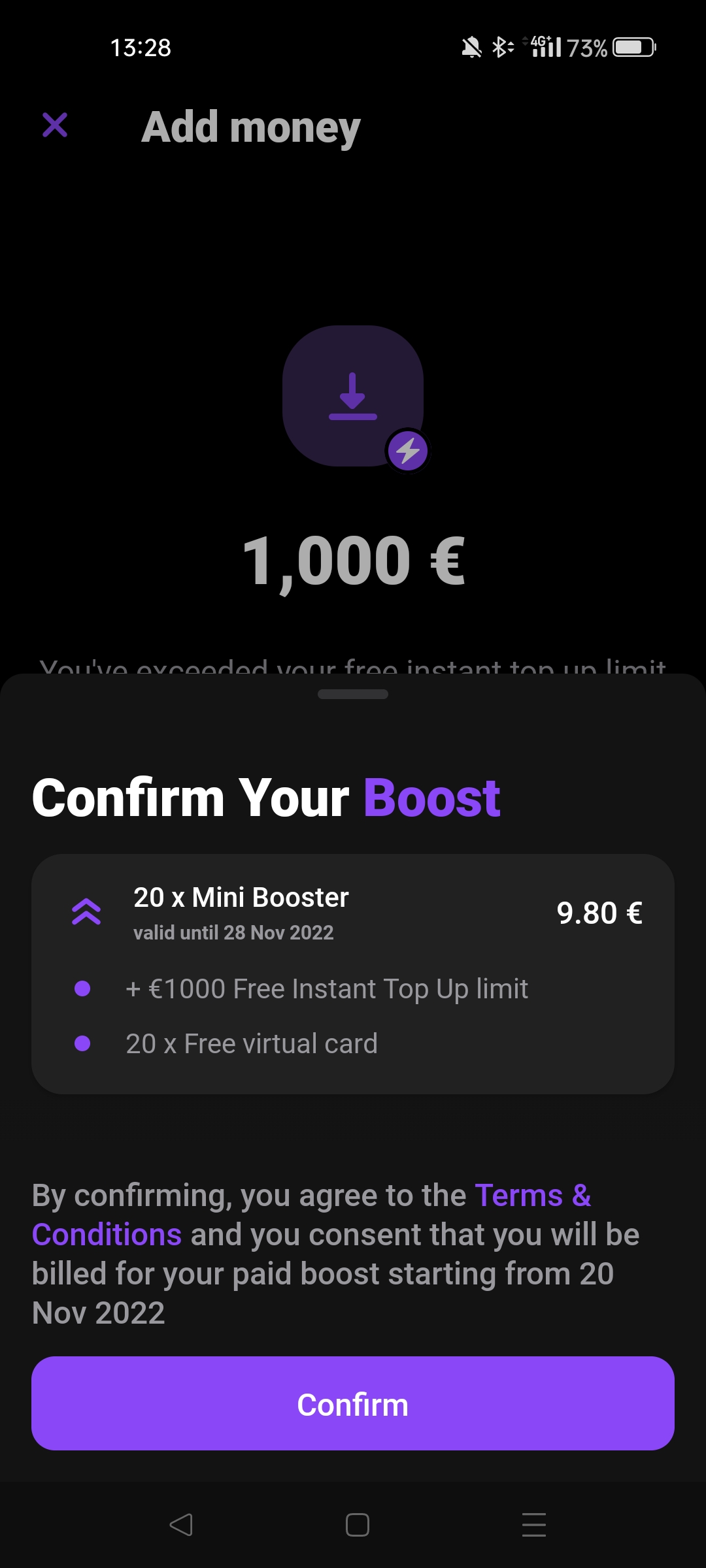 Eu não estou a conseguir ver os novos termos por algum erro da app, mas também não consigo fazer um top-up de 200 e o meu dia de reset é 11, e ainda não fiz nenhum.