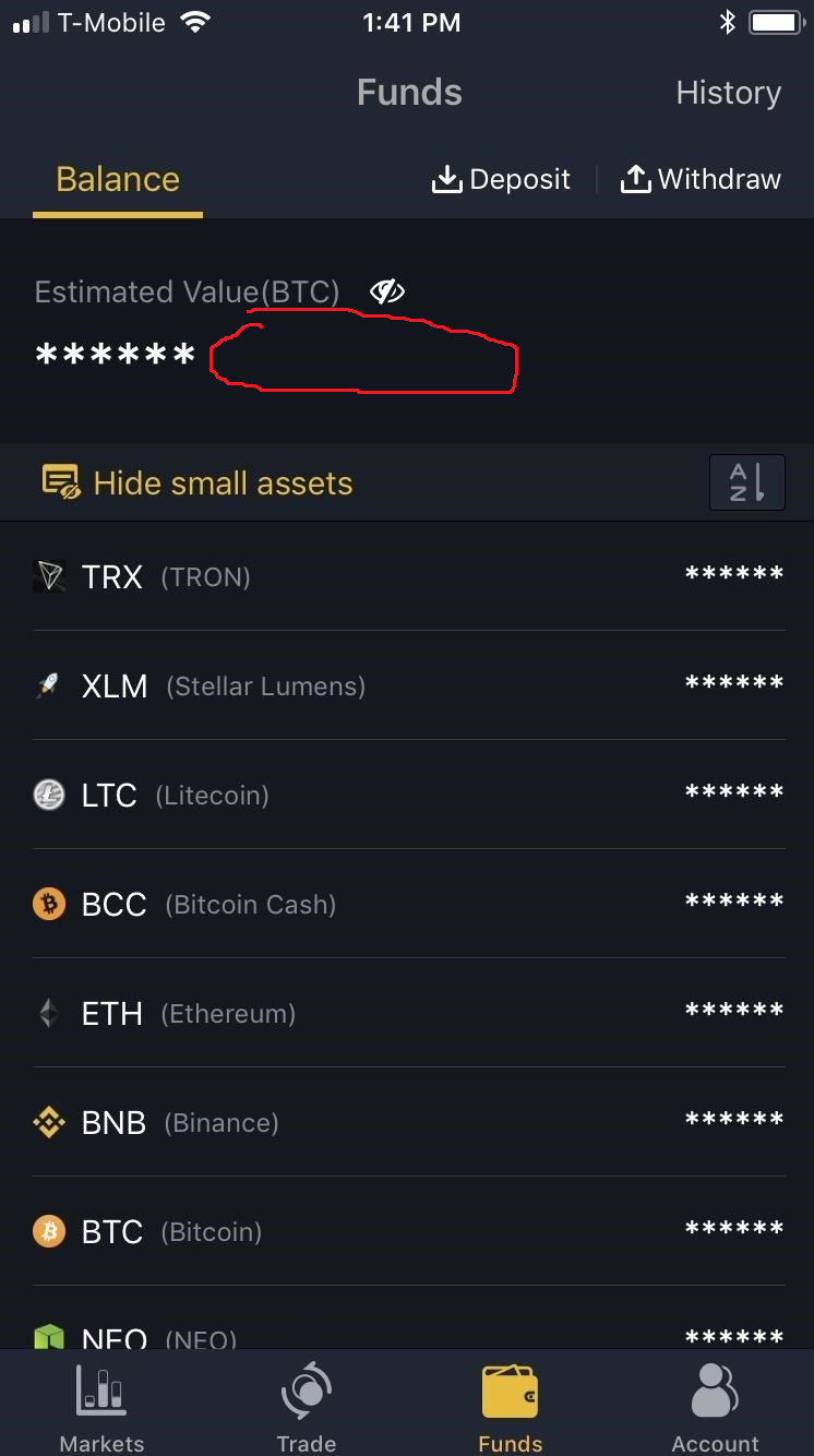 Após muito ler aqui no fórum sobre o melhor sítio para comprar criptomoedas escolhi a binance. A minha dúvida é, eu comprei 2 tipos de moedas mas quando chego à carteiro o saldo é  apresentado em bitcoins.  Há alguma maneira de mudar isso? Sei que por exemplo na coin base o valor aparece sempre na moeda escolhida. Quanto a levantamentos, já alguém teve algum tipo de problema?