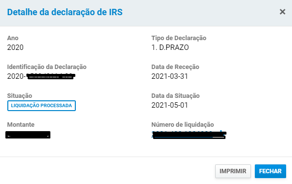 03/05/2021 - Liquidação Processada - sem acesso a Demonstração de Liquidação de IRS - por tratar