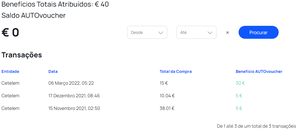 A partir do dia 7 de março será atribuído um benefício total de 20€ para o corrente mês.