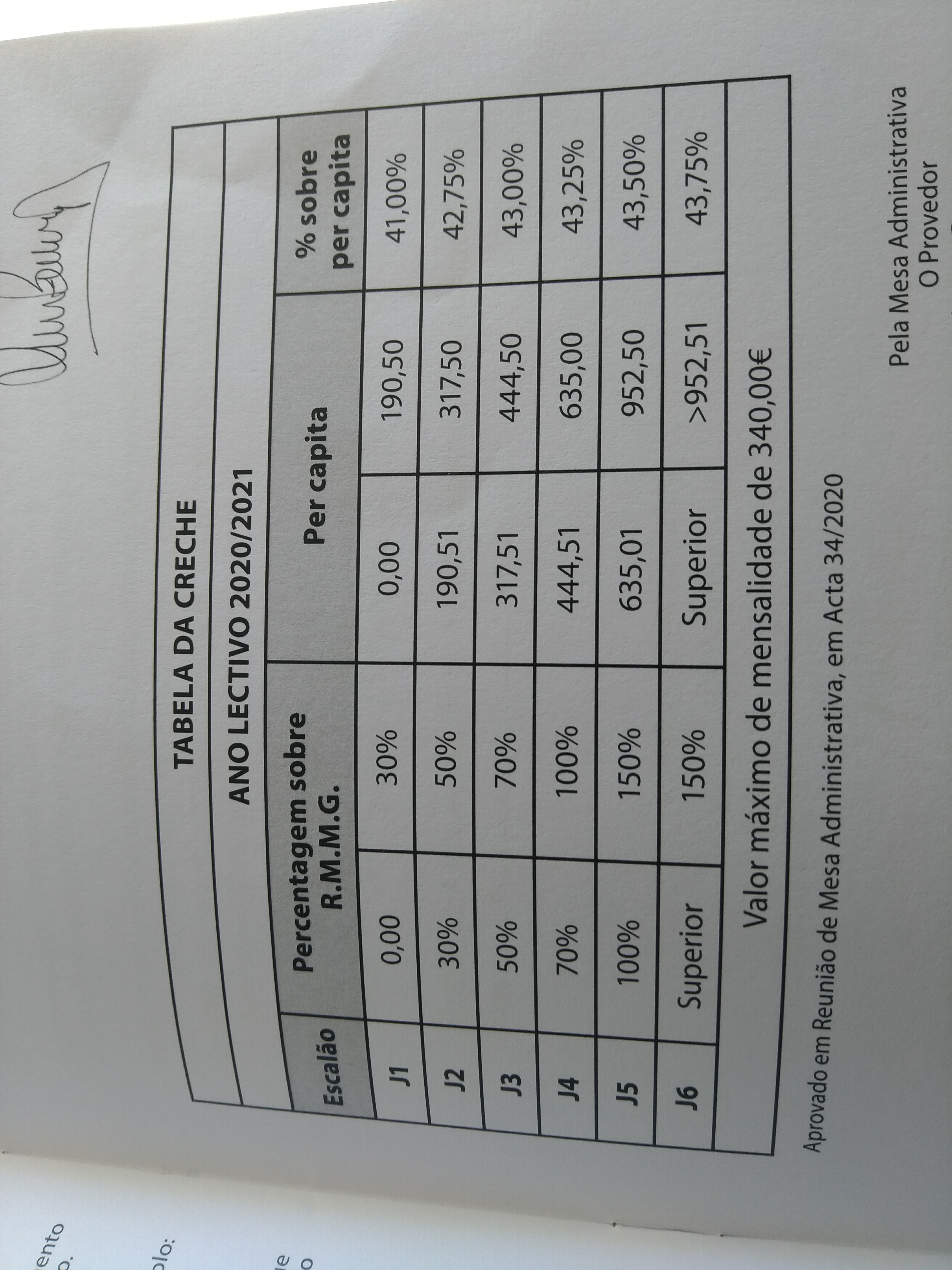 No regulamento da creche a fórmula e tabela a aplicar são as seguintes: