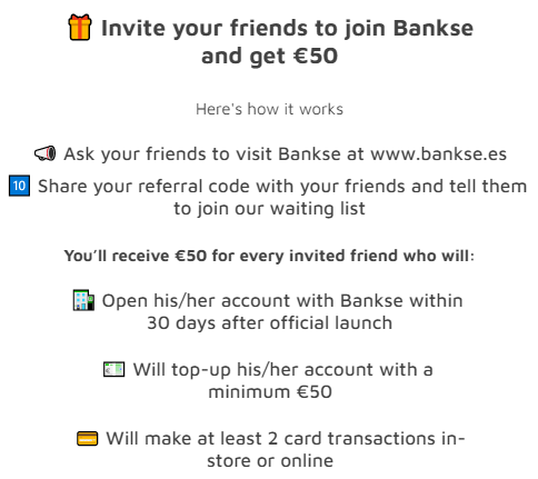 • Bankse - 50EUR de bónus por cada amigo na abertura de conta (lista de espera fechada)