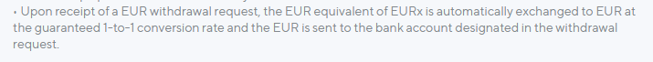 Já testei com um depósito de 100€ e é feita uma conversão automática de EUR->EURx sem custos.