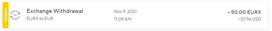 - Depositar o equivalente a 100 USD em crypto ou fiat (enviando EUR do moey chega no próprio dia se for feito de manhã). Os depósitos em EUR são convertidos automaticamente em EURx (uma stablecoin), é normal e não tem custos. É feita a operação inversa no levantamento também sem custos.  Atenção: convém enviar sempre um valor com alguma margem de segurança pois se durante os 30 dias o valor do depósito convertido em USD cair abaixo de 100 USD, o bónus é perdido. Recomendação: depositar 100€