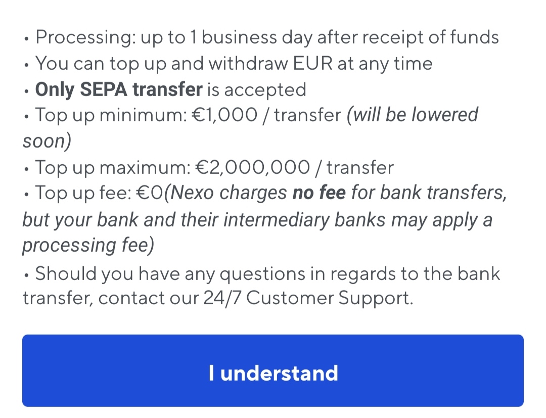 Tambem vos aparecia este minimo 1000€ para top up? Transferiram na mesma os 100€?