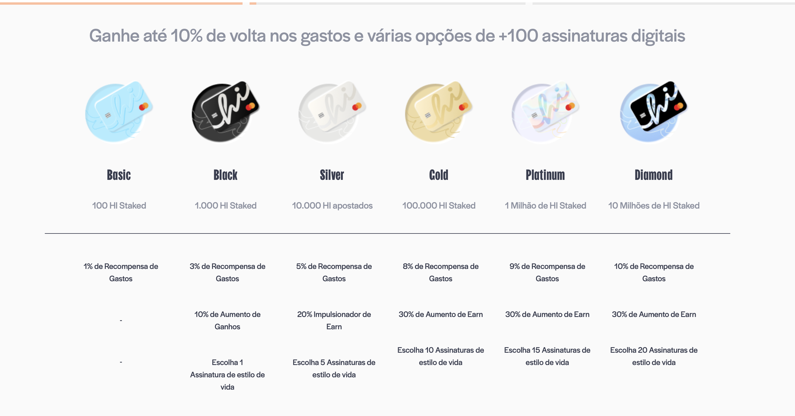 O Gold exige 5.000$ de staking e dá 8% Cashback +10 Perks