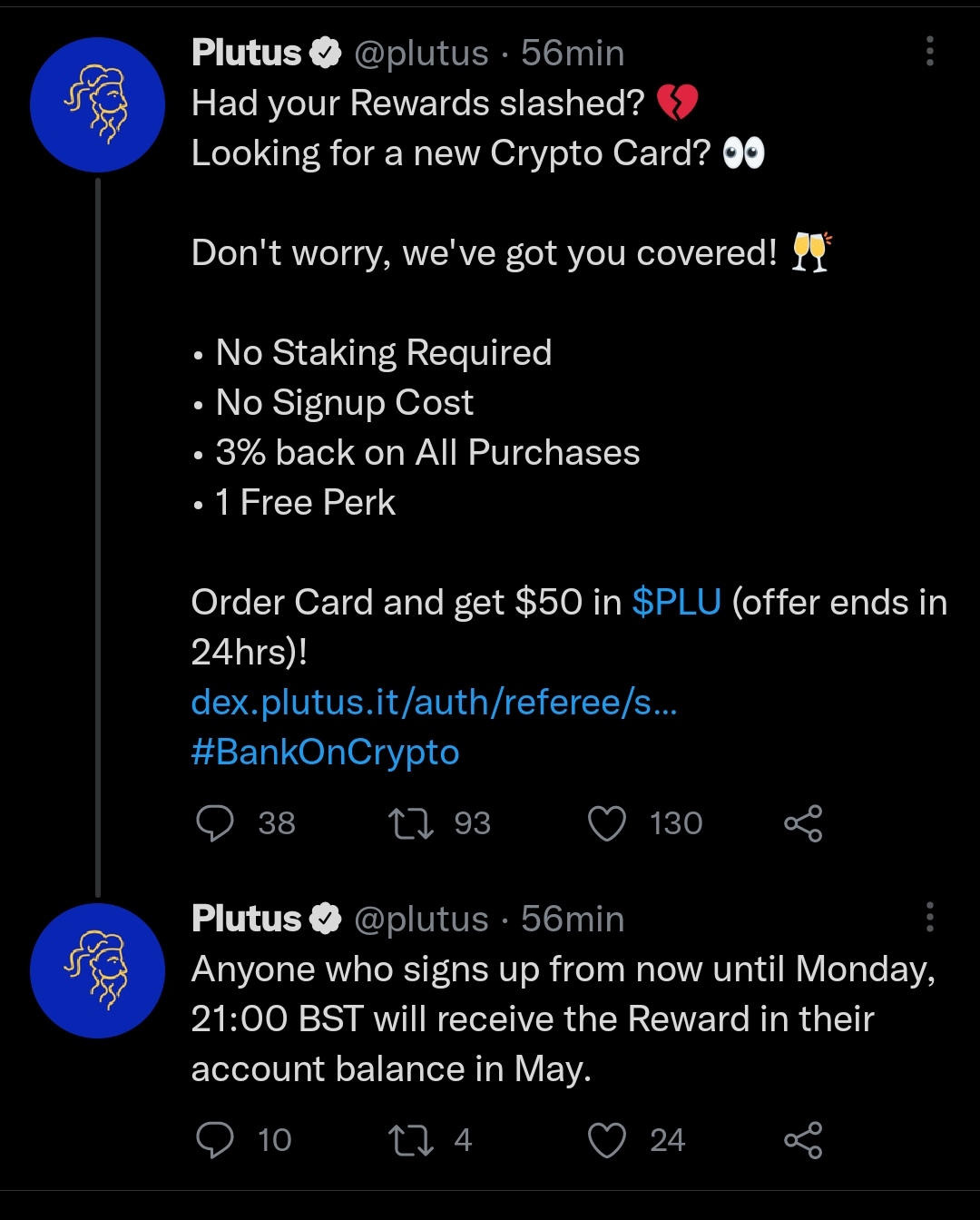 • Plutus | Cartão de débito com 3% cashback em PLU