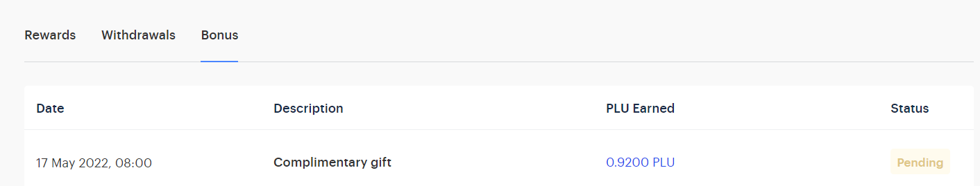 Bonus é outro tipo de PLU que te é atribuído. Esse por exemplo é um referral teu. Deve estar o mesmo valor no menu Banking => Account Settings => Referrals, certo?