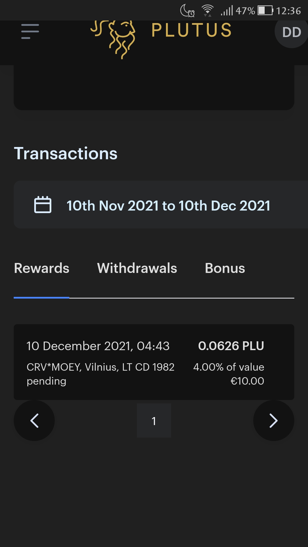 Recebi hoje (domingo) 10€ (1,64 PLU) por fazer um topup moey 5€ na sexta. Tinha adicionado o Plutus ao Curve já após o lançamento da parceria e foi a minha primeira transação Curve+Plutus.