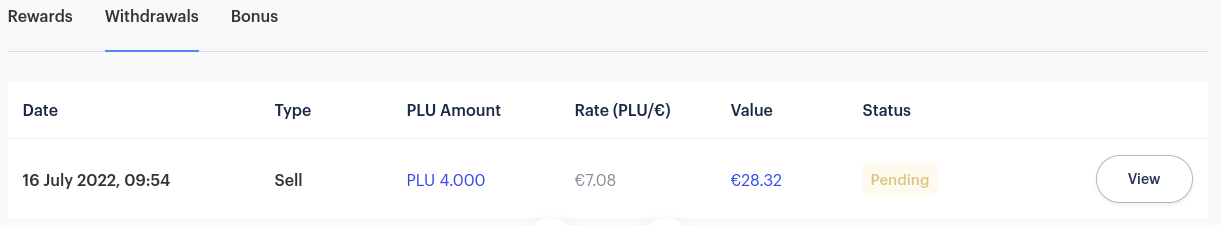 Hoje de manhã fiz o mesmo que tu em dex.plutus.it, depois opção Pluton -> Sell) vendi 4 PLU a 7.08: