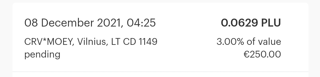 Recebi hoje (domingo) 10€ (1,64 PLU) por fazer um topup moey 5€ na sexta. Tinha adicionado o Plutus ao Curve já após o lançamento da parceria e foi a minha primeira transação Curve+Plutus.