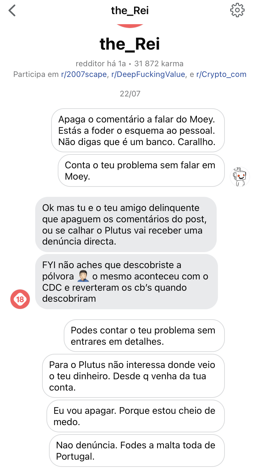 A parte mais cómica, é que esse moço se estava a queixar de algo que nada tinha que ver com Plutus. Um perfeito idiota.