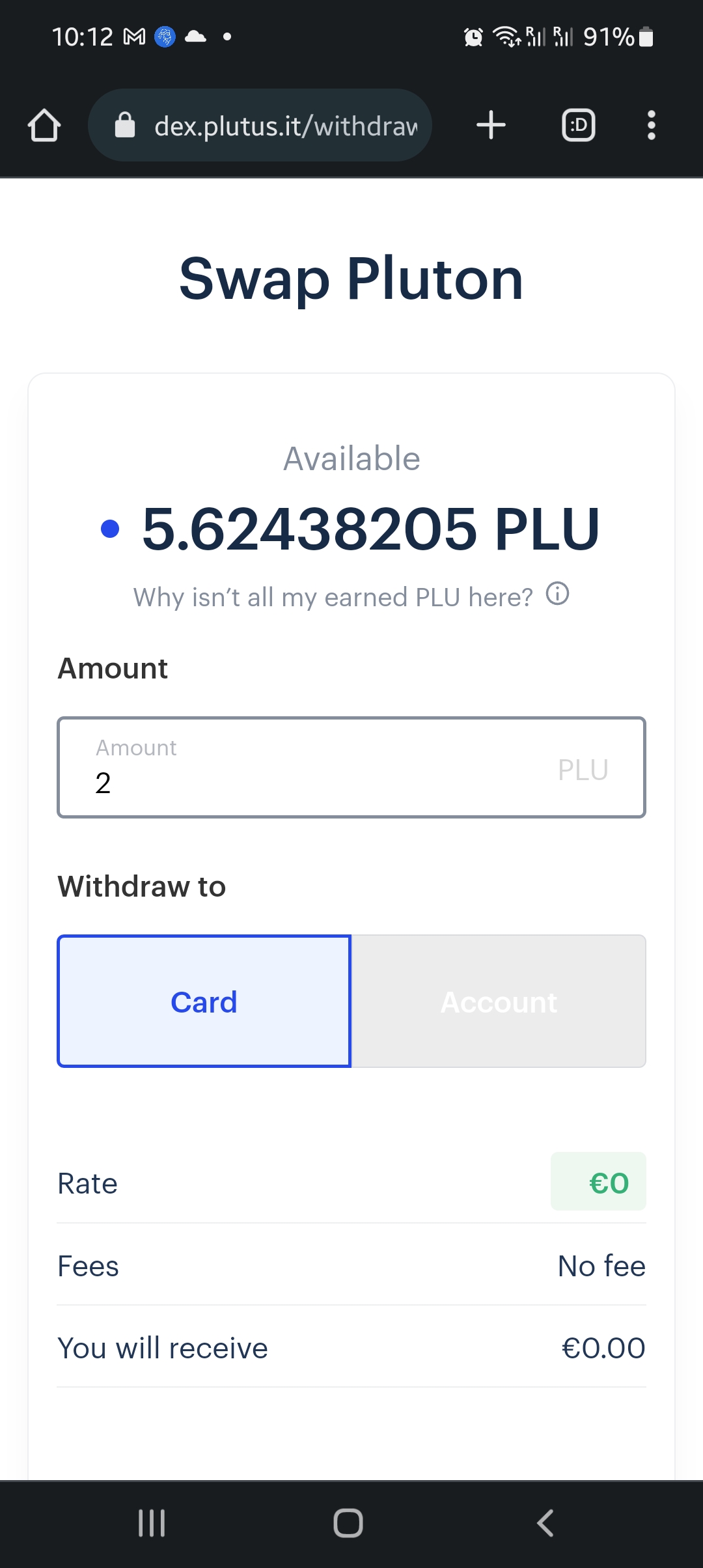 Eu tenho 200 PLU‘s e tenho-as na metamask. Portanto já não posso vender directamente no site da Plutus, o que significa que posso ter vir que pagar mais-valia, quando converter para USDT e depois converter para EUR.