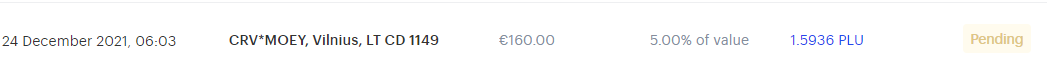 Ainda na véspera de Natal fiz um top-up que gerou PLU (ainda que esteja pending).