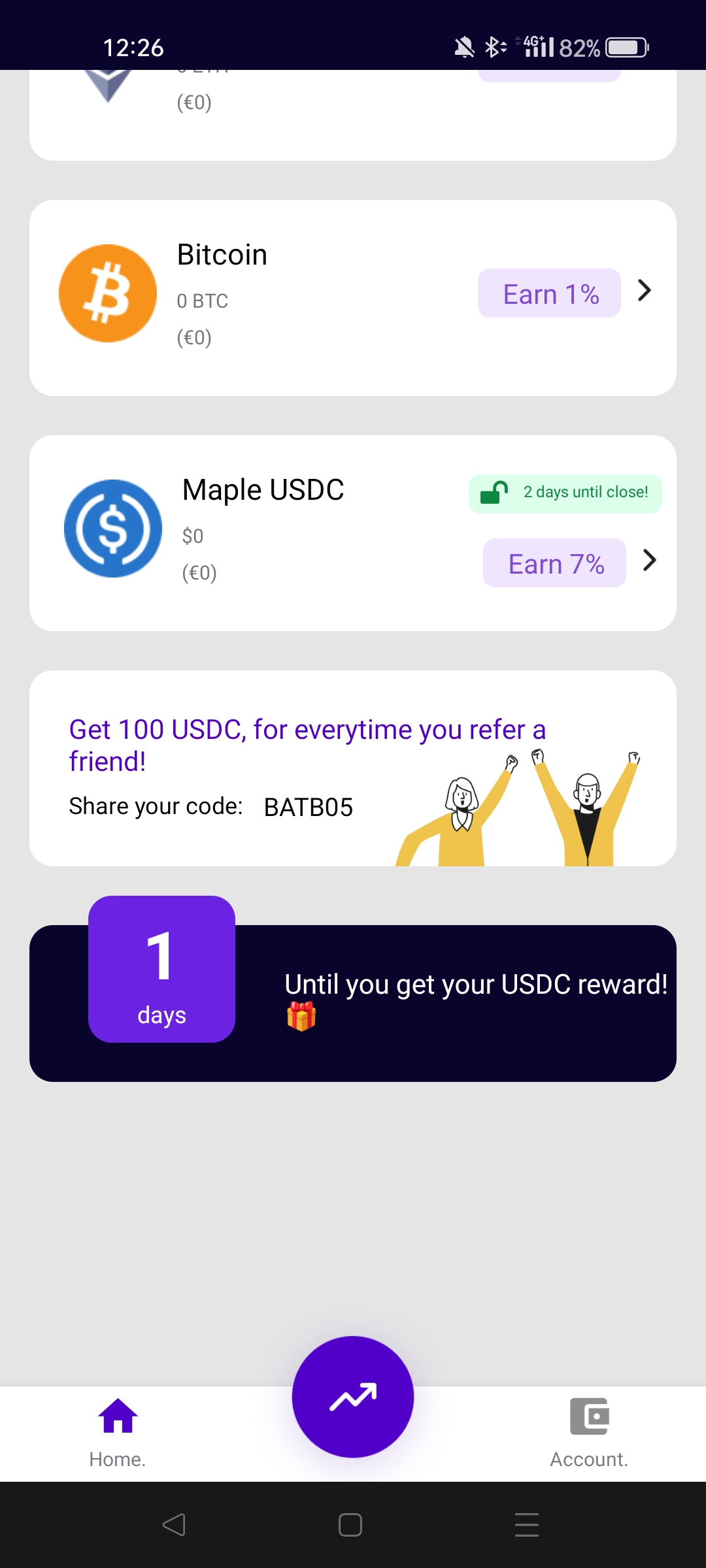a) 10EUR que são adicionados/convertidos em USDC (apenas por verificar). Só permitem sacar após 90 dias (pedem que a conta tenha um saldo mínimo de 10EUR durante 90 dias).
