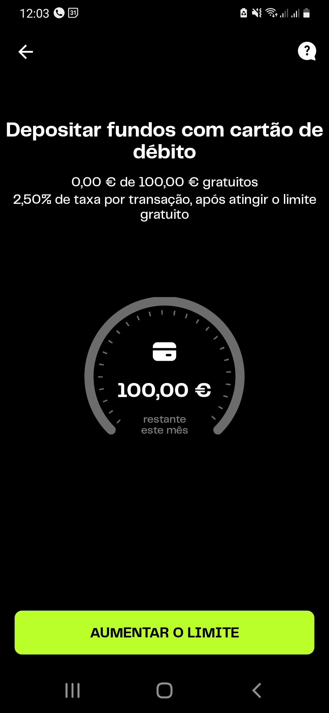Estava-me a basear apenas no "preçário": Imagem de perfil -> Limits & Fees -> Top Up by Debit Card