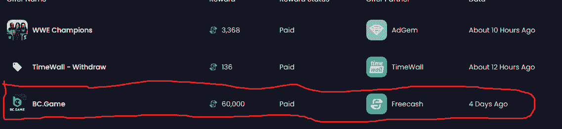 6- Feito, após 24horas o site freecash irá receber a informação que completamos a tarefa e pagar 60$.
