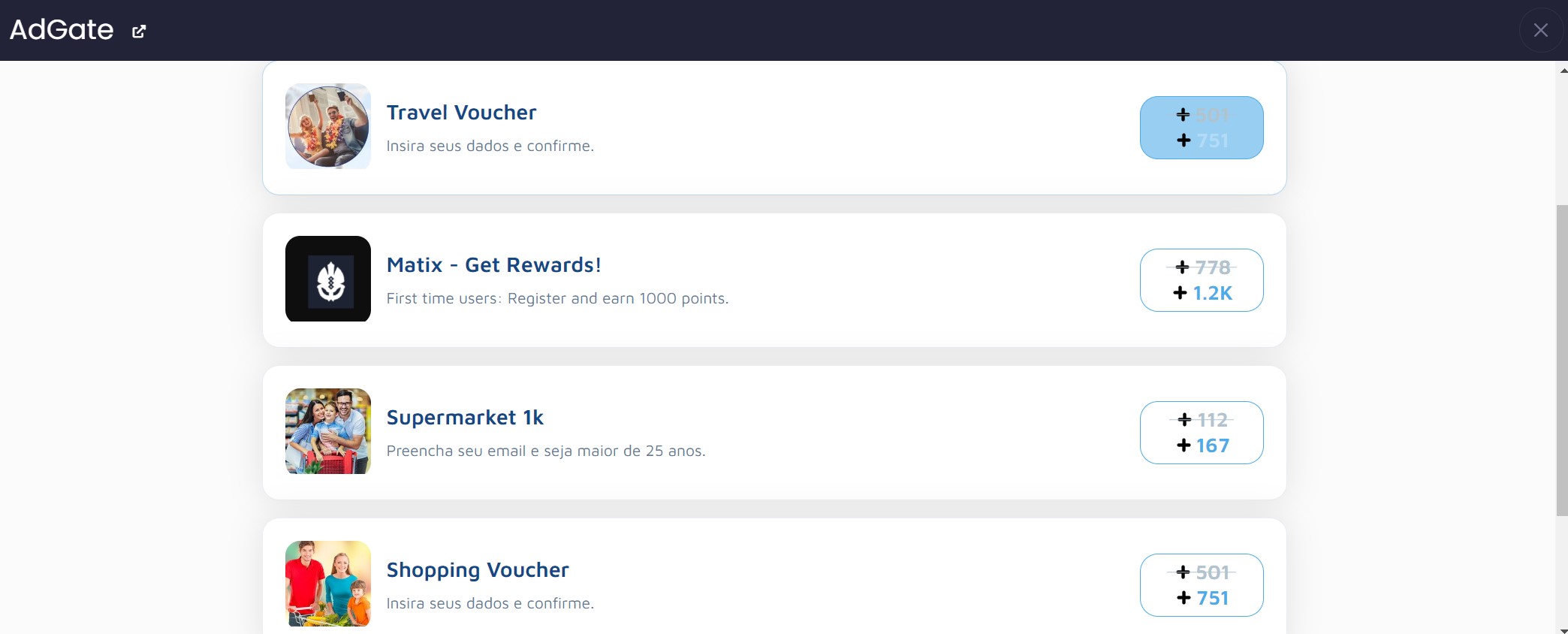 Também não tenho essa "earn cash | earn 30000" na AdGateMedia dentro do freecash.