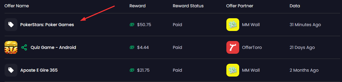 Até pareces estar na offerwall errada, essa diz Hangmyads, e eu fiz na MMwall